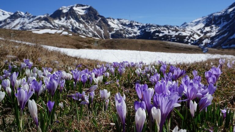 Un tappeto di colori tra neve e cielo: il risveglio della montagna raccontato nelle immagini.